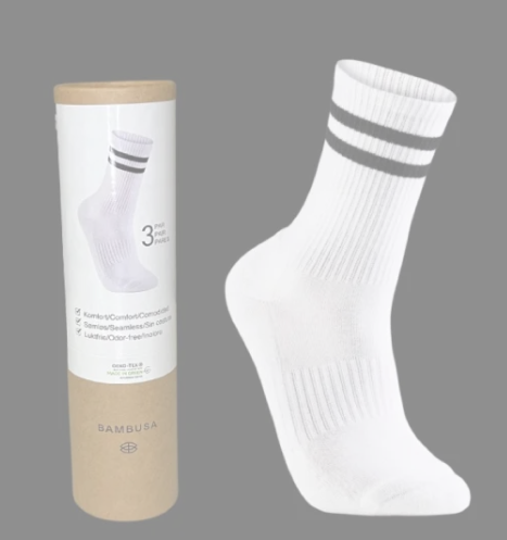 Opdag ultimativ komfort! Dette er den nye tennisstrømpe fra Bambusa i hvid. Pakken indeholder 3 par, og er i onesize (størrelse 38-45).