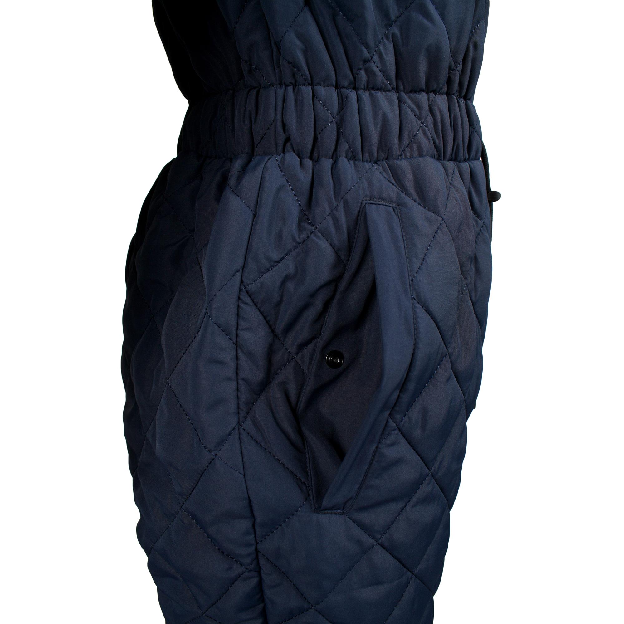 Quiltet termodragt i damefacon med 140 g/m² fyld, synlig frontlynlås, justerbar talje og elastik ved ærmer og ankler. Åndbar og vandafvisende løsning til dig, der tilbringer kolde dage udendørs i professionel sammenhæng.Når kulden bider, og du stadig skal være aktiv ude med børn eller i institutionens udeområde, tager denn termo heldragt over som din varme og praktiske følgesvend. Den kombinerer komfort, varme og bevægelsesfrihed med den funktionalitet, du har brug for i din arbejdshverdag.