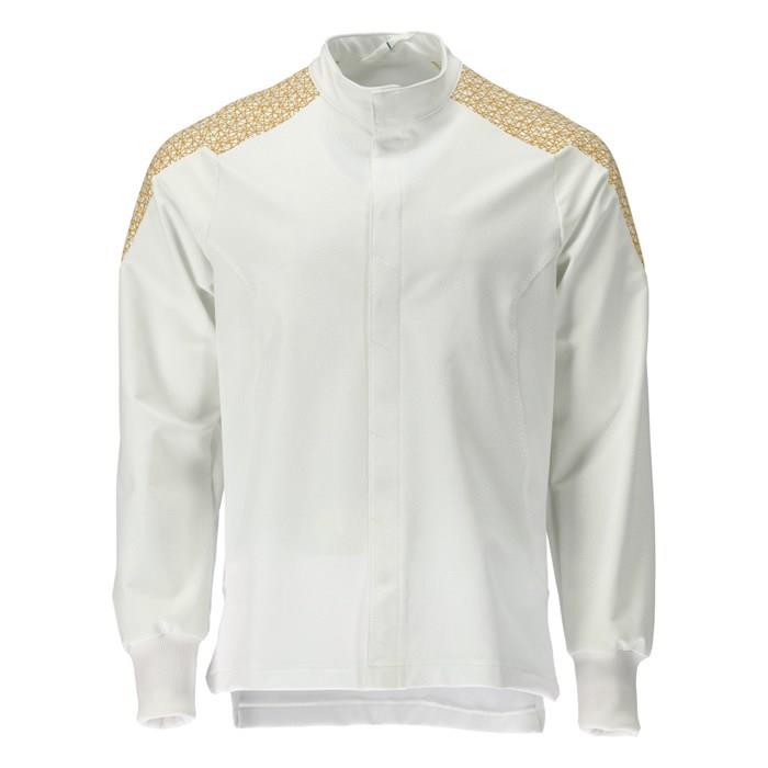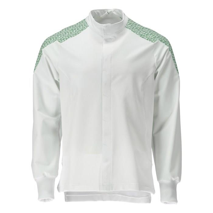 Produktet kan industrivaskes. Materialet er ikke gennemsigtigt. Strækstoffet er elastisk i alle retninger, hvilket giver en unik bevægelsesfrihed, hvor intet strammer eller generer. Det multifunktionelle strækstof kombinerer en lav vægt med en god slidstyrke. Tørrer hurtigt. Forberedt til isætning af personmærke samt HF-chip og UHF-chip. Produktet lever op til principperne i HACCP og er godkendt efter DIN10524.